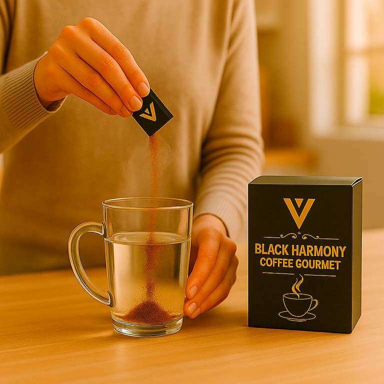 BLACK HARMONY combina café gourmet con extractos funcionales estudiados por décadas por su impacto positivo en energía, claridad mental y metabolismo.